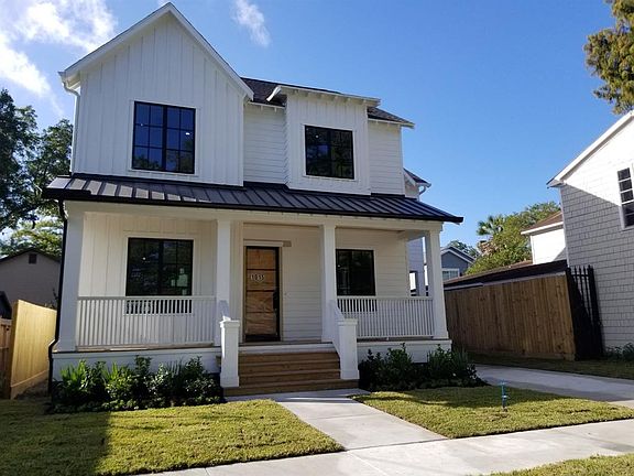 Stunning 4/5 bedroom & 4 bathroom new construction by Hubley Homes & Development in desirable Sunset Heights. Home features a first floor study/guest suite, dining room, butlers pantry, expansive island kitchen, massive family room that opens to the covered porch and yard, mudroom, luxurious master suite with large walk-in closet, play area upstairs and the highest attention to detail. The open and light filled floorplan with 10-foot ceilings boasts high-end finishes with custom site built shaker cabinetry, rift sawn white oak details, custom metal railings, designer fixtures, marble countertops, white oak hardwood floors and extensive moldings throughout. Energy efficient home W/Low-E windows & tankless water heater. Short commute to downtown and minutes from the Airline Farmer's market, HEB, Whole Foods and wonderful dining choices.