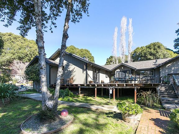 Fabulous single-level home on nearly 3/4 of an acre with delightful artist's studio & beautifully landscaped grounds close to Aptos Village, Nisene Marks, & Rio Del Mar Beach! A perfect retreat for entertaining guests, complete with an abundance of indoor/outdoor living space & a nice balance of relaxed yet sophisticated charm. The 1742 Sq Ft interior features Hickory wood floors, open-concept living spaces, & a Chef's quality kitchen complete with modern cabinets, granite countertops, a splendid center island, and elegant stainless steel appliances. Notice the dramatic wood-burning fireplace, fluted kitchen lighting, & cozy breakfast bar as you make your way. The sizeable primary suite affords a walk-in closet, stylish soaking tub, and French doors for plenty of natural light. Room for oversized vehicles or toys, hardscaped perimeter path, concrete patio with Pergola, firepit area, multiple access gates, as well as Park-like views of the yard from almost every room. Must See!