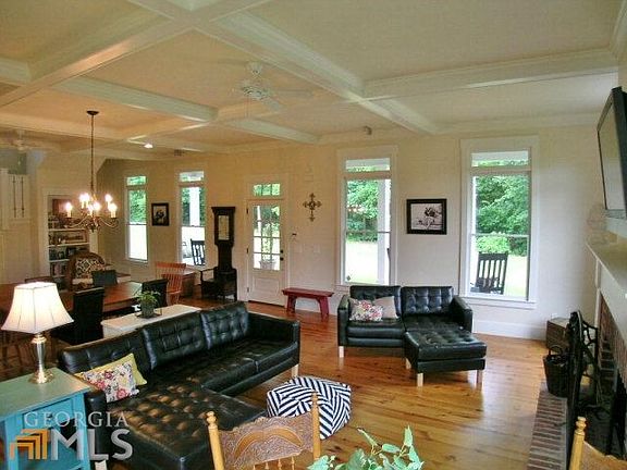 Extraordinary custom built cottage-style home on five acres with creek at back of property. A huge great room greats you with ten foot coffered ceilings and a brick fireplace. There is central stereo and the speakers stay! The chef's kitchen overlooks the great room so the cook is in the center of the action. The kitchen joins the great room to the screened porch and is at the heart of the home. There are custom cabinets, stainless steel appliances, and lots of windows. There are so many windows that you might get distracted watching the wildlife in the yard! The screen porch is large enough for a sitting area and a dining area and features a stainless steel fireplace. Beyond the screened porch is the guest cottage which could function as a teen or in law suite. It has it's own bath, kitchenette, and loft plus a private porch overlooking the yard and woods beyond. The master suite is separated from the main house by a heated and cooled breezeway that also functions as an office area; it is has it's own porch and is loaded with windows. The master bath features tile floors, a claw foot tub, two vanities, and a separate tile shower. There is no carpet in this home, just hardwood floors and lots of them. This is an excellent location for Athens or Atlanta commute; it is less than 5 minutes to STRIPLINGS GENERAL STORE in Oconee County!