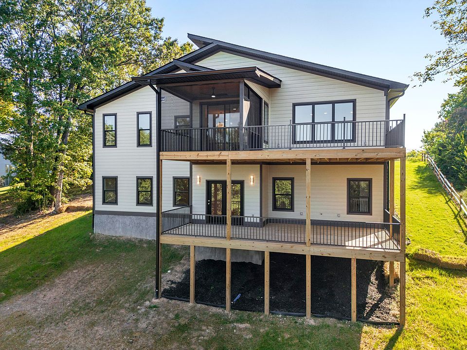 As you open the front door, you are greeted by a wide, open foyer that draws your eyes straight ahead into the heart of the home. Two generously sized guest bedrooms and a full guest bath are near the front of the home. The main living area unfolds into an open concept design where the living room and kitchen flow seamlessly together while enjoying all the natural light from the expansive windows, framing glimpses of the surrounding mountains and valley below. The living room is centered by a tiled gas fireplace to enjoy those chilly winter evenings. The chefs kitchen is the showpiece, built for beauty and function. Crisp quartz countertops stretch across a large island, designed to be a gathering spot for family and friends. A full stainless steel appliance package includes a chefs range, sleek quiet dishwasher, and a built-in microwave drawer, bringing convenience to every meal. The builder has reserved to hang the dining room light for your own tastes and table placement. From here, step out onto the screened-in porch and continue onto the large open deck where Lookout Mountain can be seen in the distance and the valley views extend for miles. Imagine sipping morning coffee or enjoying a sunset dinner as the horizon paints a new masterpiece every day.