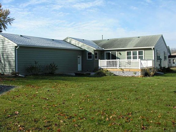 Lovely, South-facing Ranch home just a block from Mitchell County Regional Health Services with main-floor laundry, oversized double attached garage, composite deck, and stamped concrete patio.