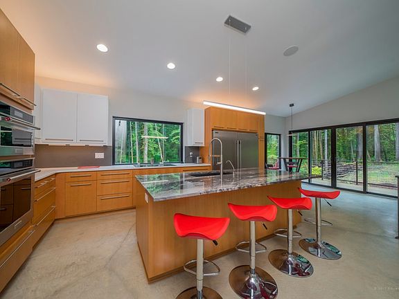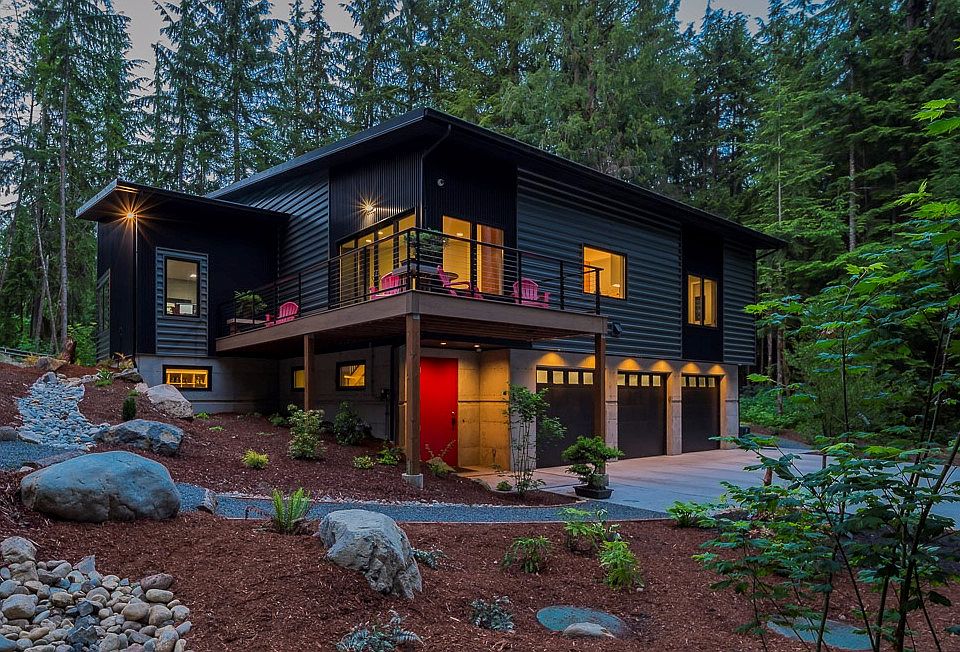 Stunning FULLY Custom Modern Design on 6 Acres! 4 BR, 3.5 BA, 2823 Sqft. Metal siding/roof, Timber Tech comp decking with steel rails/cables. Triple pane fiberglass Alpen casement windows/sliders. 3 zone Radiant floor heating [concrete floors on both levels]. Kitchen features custom soft close Douglas fir cabinets, Marble island, quartz counters/backsplash, above cabinet LED lighting.Walk-in master shower with floor to ceiling tile, rain shower, hand shower/body sprays, soaking tub. There's much more - Must see!