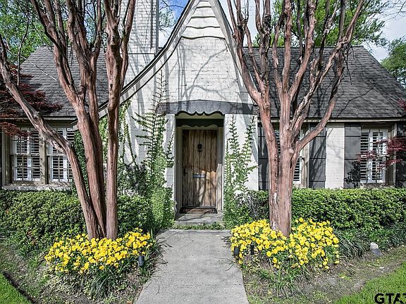 Darling French Normandy style cottage built in 1934 and located in the heart of the Azalea District. The home has had many updates over the years, but still maintains its original charm and character. Beautiful hardwood floors throughout are original to the home, which also includes gorgeous wood moldings and built-in cabinetry. Granite counters in the bathroom and custom tile counters in the kitchen. Large laundry room w/sink. 2 bedrooms on the main level plus 2 additional rooms upstairs that could be used as bedrooms, office or playroom. The fenced backyard is beautifully landscaped with a stone patio and storage shed. Don't miss your opportunity to own this lovely piece of Tyler history.