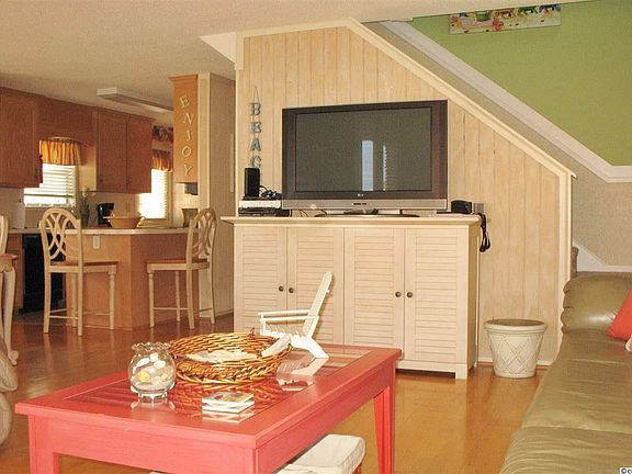 Super cute, Immaculate home in Surfside Beach. 2nd Row Beach Community with Large Pool! Last home on south end of S. Sea Bridge Court with lots of privacy and extra parking! 3 Bedrooms, 2.5 baths! Views of Dogwood lake and also glimpses of the Atlantic Ocean! Hardwood floors in Living room! New OPEN layout kitchen (remodeled to be open and include large breakfast bar. Lots of outdoor living on front porch and under home on ground level! Outside shower and large attached storage room with two entrances including a Golf Cart garage door with private code pad to enter! Only 70 steps to the pool! Sold Furnished... with the exception of personal belongings and contents in storage and closets. Half block to Ocean and half block to Dogwood Lake! This home is perfect for a 2nd home getaway/ vacation rental or Primary home! Sea Bridge is the place to be!