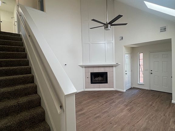 Like new . Great family home with 4 bedrooms. Master bed and bath are downstairs with the other 3 bedrooms and bath upstairs. Wood laminate flooring downstairs, brand new carpet upstairs. Expanded back yard patio. Lawn maintenance INCLUDED! All brand new appliances, faucets, cabinets, doors, lighting, and marble countertops.