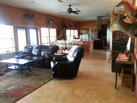 440 acres of woods, wetlands, and pasture with a brick home sitting on 1/2 acre, man-made pond with dock; an aluminum John boat too. Colombian stone floors run through the house. Kitchen has granite counters, cherry wood cabinets and stainless appliances. The island and stainless hood vent are gorgeous. Attic space measures 10x60, that's 600 sq ft heated and cooled. Land also includes a guest residence with 4 bdrms, 1.5 bth, and front & rear decks(56x27). The Big Barn has hot water, a utility sink & .5 bth (52x60, + 10x60). Horse Barn: Hot water heater, 3 horse stalls, 2 paddocks, a tac room, an arena, and wood fence surrounding a 2 acre field with electric (48x36). Also, 8 acre fenced cattle field with electric. Barn3:(46x26) Barn4:(26x26) Workshop:(12x17) Chicken House:(10x10)
