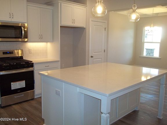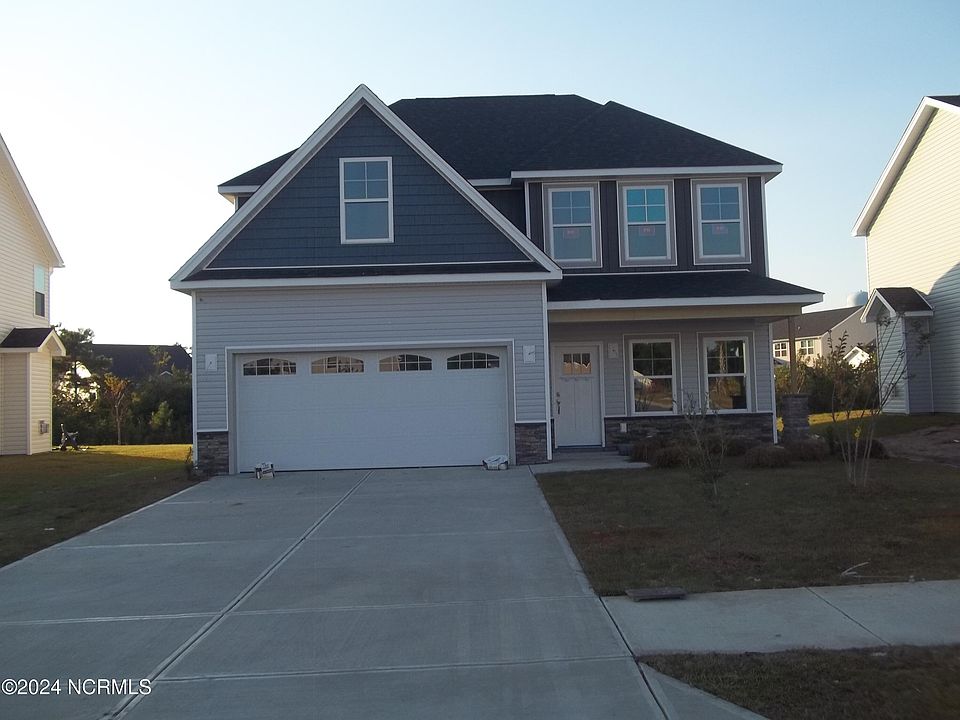 Stunning Richmond Plan built by Windsor Homes in The Terraces. Conveniently located halfway between Wilmington and Jacksonville, and within 10 minutes of local beaches in the highly sought after Pender County School District. Driving up you will immediately notice the upgraded exterior elevation with covered front porch and stone wainscoting. Enjoy a covered porch in the back as well as an additional patio and extra gas line, backed up to wetlands. A formal dining room greets you in the main entrance, along with LVP throughout the downstairs main living areas. Kitchen includes a large kitchen countertop and whirlpool stainless steel appliances including a gas range. The kitchen also opens up to the great room with huge vaulted ceiling and gas fireplace. Off of the great room is the downstairs primary bedroom that includes an extra door to the covered rear porch. Primary bath includes quarts countertops and a 5' walk in tile shower. Upstairs includes three additional bedrooms, as well as a large loft that overlooks the great room. The Terraces is a natural gas community that also has fiber optic internet, as well as other community features that include a pool, lake, and picnic area.