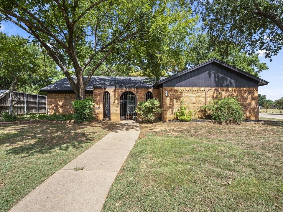 Sitting proudly on a HUGE CORNER LOT, this home offers a quaint FRONT COURTYARD that creates a welcoming first impression! It provides a tranquil space for GREENERY, PRIVACY & SECURITY! A FORMAL LIVING & DINING room beckon for celebrations & LARGE FAMILY ROOM comes complete with a BRICK FIREPLACE. The kitchen isn’t missing a thing! Gorgeous counter tops, DOUBLE OVENS, & plenty of STORAGE! Your primary suite is a true retreat & the SEPARATE VANITY is such a great feature. You’ll love the extra elbow room & storage! The additional bedrooms are ideal for CHILDREN, GUESTS or a HOME OFFICE. The real magic of this home lies OUTSIDE! The EXPANSIVE COVERED PATIO is ready for entertaining or simply soaking in the beauty of your HUGE BACKYARD. Imagine afternoons under the shade of beautiful PINE TREES! The cozy OUTBUILDING is a delightful bonus. Create a great setting for relaxation or hobbies! The CENTRAL LOCATION is convenient to EVERYTHING Mansfield has to offer! So why wait? SEE it today!