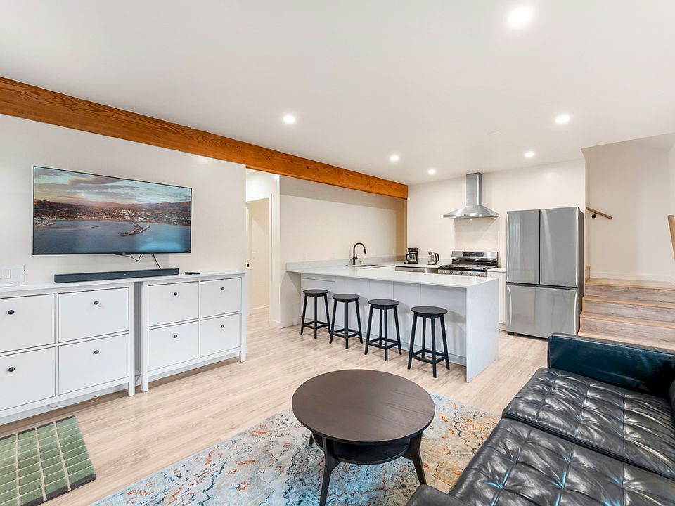 Available immediately. Private 2 bedroom / 1 bathroom unit with top quality finishes. Cozy enclosed patio, dishwasher, refrigerator, stove, oven, full-size stackable washer and dryer, Quartzite countertops, stone flooring, dual pane windows, mini split AC & heating and recessed LED lighting.