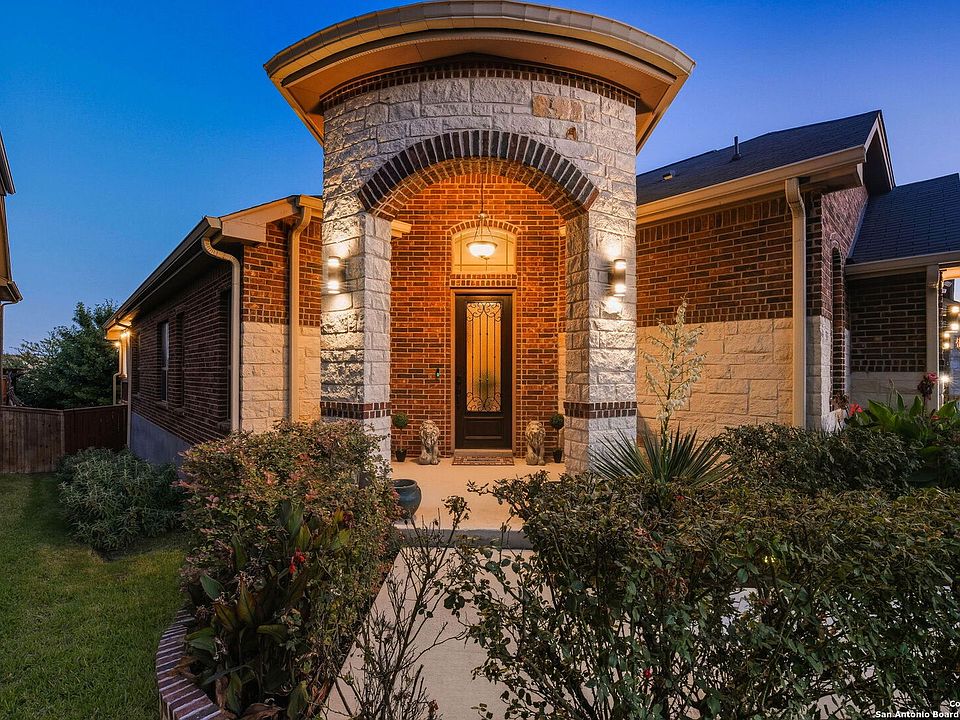 Welcome to this inviting single story low maintenance home that perfectly blends comfort, style, and functionality. Featuring 3 bedrooms, 2 full baths thoughtfully designed for modern day living. As you step inside, you're greeted by a grand entry dome that sets the tone for the elegance found throughout the home. A charming foyer flows effortlessly into the spacious, open concept main living area. At the heart of the home is a gorgeous kitchen showcasing granite countertops, a large center island, and a dining area that connects seamlessly to the family room ideal for both everyday living and entertaining. Step outside to your private backyard oasis, featuring a spacious 30x20 deck with gorgeous panoramic views of Alamo Ranch. Whether hosting gatherings, enjoying your morning coffee, or relaxing at sunset, this outdoor retreat offers the perfect blend of comfort and beauty. With its thoughtful layout, contemporary upgrades, low maintenance design, and stunning outdoor living space, this home offers the ultimate in comfort, practicality, and modern elegance all nestled in the highly desirable Alamo Ranch community.
