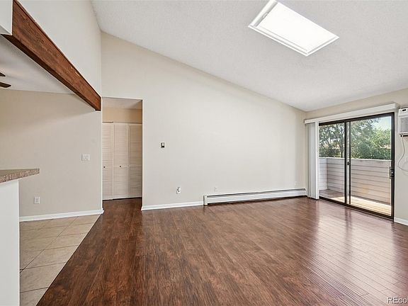 NEW PRICE! Welcome to this bright and inviting second-floor condo in the gated Oak Park community—offering comfort, convenience, and an unbeatable location! This 1-bedroom/1-bathroom unit is move-in ready with all new interior paint, an open floor plan, and vaulted ceilings with a skylight that fill the living space with natural light. Cozy up by the fireplace or step out onto your private balcony overlooking the scenic High Line Canal Trail—a 71-mile-long trail that winds through parks and open space, perfect for walking, biking, or relaxing in nature. The home includes a rare 1-car detached garage, a unique perk in this complex, and easy access to everything you need. The HOA covers heat, water, sewer, trash, snow removal, and exterior maintenance, plus you’ll enjoy great community amenities like a swimming pool, clubhouse, playground, and BBQ area. Ideally located near public transit, golf courses, shopping, dining, I-225, and beautiful open space parks. Whether you’re a first-time buyer, down-sizer, or investor, this is a fantastic opportunity to own a well-maintained condo in a sought-after area. Don’t miss it—schedule your showing today!