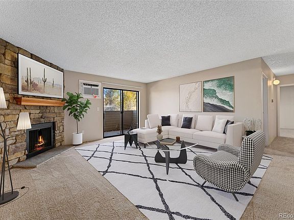 Cozy 2-bedroom, 2-bathroom property offering convenient one-level living in a gated community. Inside, you'll find an open layout with a wood-burning fireplace, complete with a floor-to-ceiling stone surround. New plush carpets and new AC units have been recently installed, ensuring plenty of comfort and no high-price repair items. Enjoy a private patio for outdoor relaxation. The well-equipped kitchen boasts modern stainless steel appliances, plenty of cabinetry, and granite countertops with bar-height seating. The primary bedroom features an en-suite bathroom and a walk-in closet. The community provides excellent amenities such as a pool, playground, volleyball courts, and a picnic area. Additionally, the location is close to the Lowry Sports Complex, golf course, dog park, and walking trails, with easy access to major roads. This move-in-ready home offered at a low price with great amenities is ready for you to move right in and call it home!