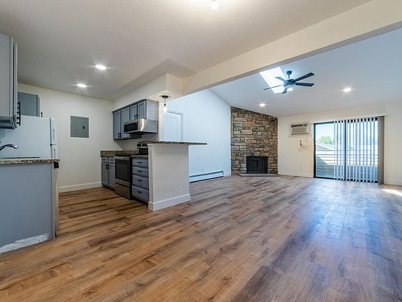 Modern finishesNew microwaveVaulted ceilingsNew flooringTwo bedroomsTwo bathroomsNewly painted cabinets