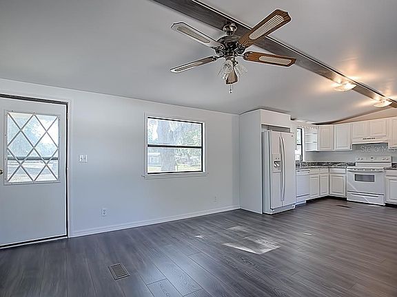 Looking to live in a small town mobile home community, but don't want to pay lot rent? Here is your chance to own your own beautiful mobile home located in a cul-de-sac with an additional lot right next door. This is a gorgeous 2/2 mobile home that has some great upgrades! Granite counter tops in the kitchen, new flooring throughout and fresh paint. What makes this home even better is the bonus room that wraps around one side of the home. You could use it for a master or a giant living area. The options are endless. You have to see it to believe it! This community is tucked right in the quaint town of Webster. You can drive throughout the community on golfcart. There is a great sized above ground pool in the back yard. So fill it up and float around in your own oasis. Also out back you can find 2 sheds for storage and a great workshop or garage!