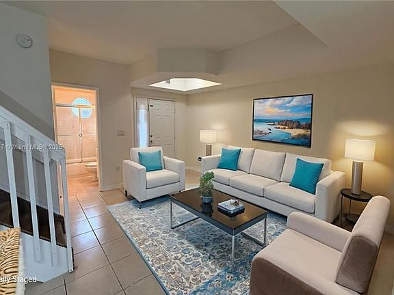 Beautifully maintained 3BD/3BTH townhouse and a 1 car garage with EV charger in a gated Tiffany of Kendall community. Features tile floors downstairs, carpet upstairs, and an open kitchen flowing into bright dining and living areas. New washer, dry, stove & microwave. All bedrooms upstairs, including a spacious primary suite with high ceilings, walk-in closet, and bath with dual sinks. Full bath conveniently located on the first floor. With a private patio ideal for outdoor dining. Prime location near highways, shopping, and schools.Courtesy of Miami Way Realty Inc. (Listing 3321652 Confirmed 10/23/2025.)