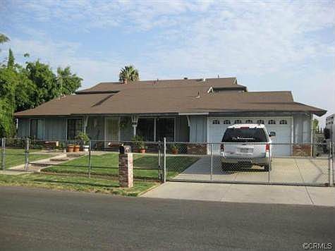 Recent updating done! HORSE PROPERTY IN JURUPA VALLEY! Bring your whole family to this one! 7 bedrooms, 4 bathrooms, 3392 sq. ft. HUGE kitchen with lots of cabinet space, 2 sinks, 2 large capacity ovens, Corian counter tops, large pantry. Separate living room (approx. 20X15) and a family room with fireplace (approx. 25X19), laundry room. Master bedroom (approx. 19X20) with attached office/weight room (approx. 11X13 with closet). Ceiling fans in all bedrooms. Two whole house fans. Have teen aged girls? There is a separate "hair" room with sinks and mirrors to keep them out of the bathrooms! With little modification, floor plan lends itself to an in-laws-quarters with own living room, bedroom and full bathroom. Newer exterior paint. Attached 2 car garage. Half acre horse property, corner lot with 3 RV parking off 2 streets. 24X24 cement block barn with hay storage and two 12X12 turnouts. Large paddock area plus two 75 ft. long horse runs with 16X16 metal covers each, wash rack. 4 dog runs with covers. Property is flat, fully fenced and 100% usable. 10X15 storage shed. LOTS OF CEMENT. Within 2 miles to elementary, middle and high schools. CLOSE TO RIDING TRAILS AND RIVER BOTTOM TRAILS. Located where 15 fwy and 60 fwy's meet. A RARE FIND INDEED!!!