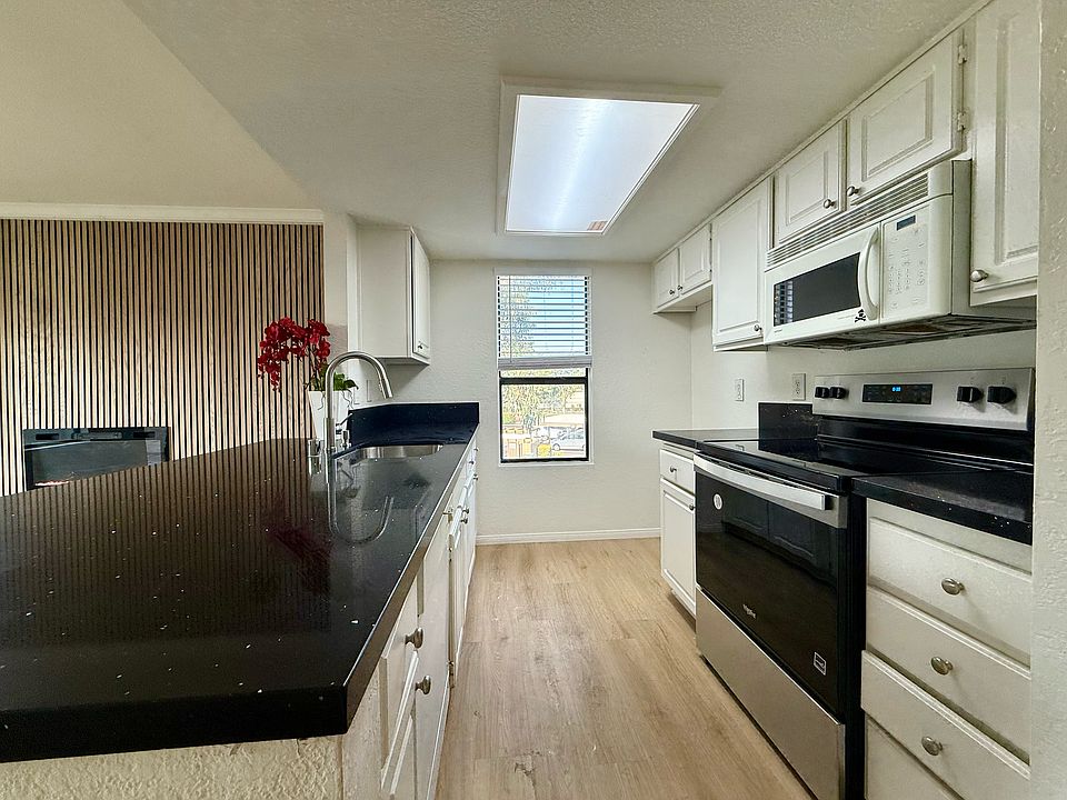 Completely remodeled Condo with a large balcony overlooking the pool in the heart of Rancho Cucamonga. New laminate white oak flooring, New stove, fresh paint, Upgraded kitchen with a breakfast bar, newly renovated bathroom with a stylish black and white vanity. close to freeway and shopping, bathroom access is from hallway not bedroom, indoor washer and dryer closet. Water and trash included in the rent. The rent includes trash, sewer and water.