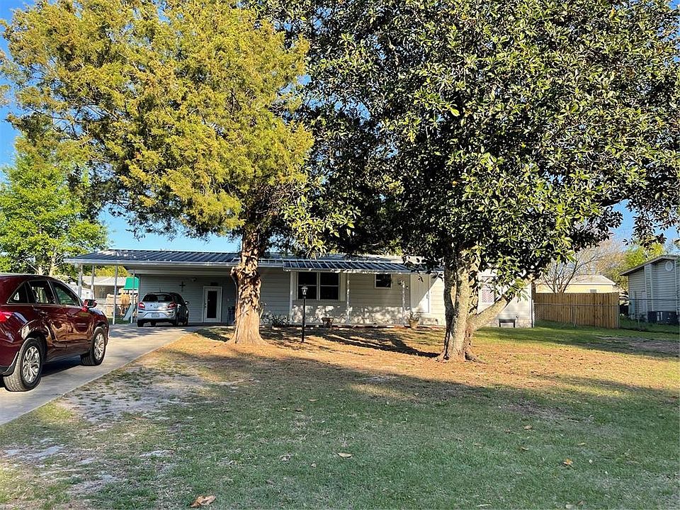 Darling and spacious! Generous size living room and eat-in kitchen that has wood cabinets, appliances including BRAND NEW LG stainless steel refrigerator w/dual ice makers and pantry. Built-in craft unit cube in the wall of the living room (fold-away). Cozy back screened in porch and separate outdoor enclosed laundry area. Work bench and both washer and dryer will stay. Oversized 1-car carport. UPDATES INCLUDE: A/C unit replaced in 2019 along with the majority of the ceilings and floors being new. The flooring in LR and bedrooms is a PREMIUM laminate wood. Digital thermostat. Ring door bell. NEWER ROOF. Well motor replaced in 2022. The main electrical service box has been updated and replaced. Private back yard that is completely fenced. Seller states the exterior construction is aluminum siding. NO HOA! Majority of Interior recently painted along with new some new landscaping. Close proximity to Hope Park (Lake Weir), Carney Island Recreation & Conservation area. Great location ... easy drive to Ocala or The Villages.