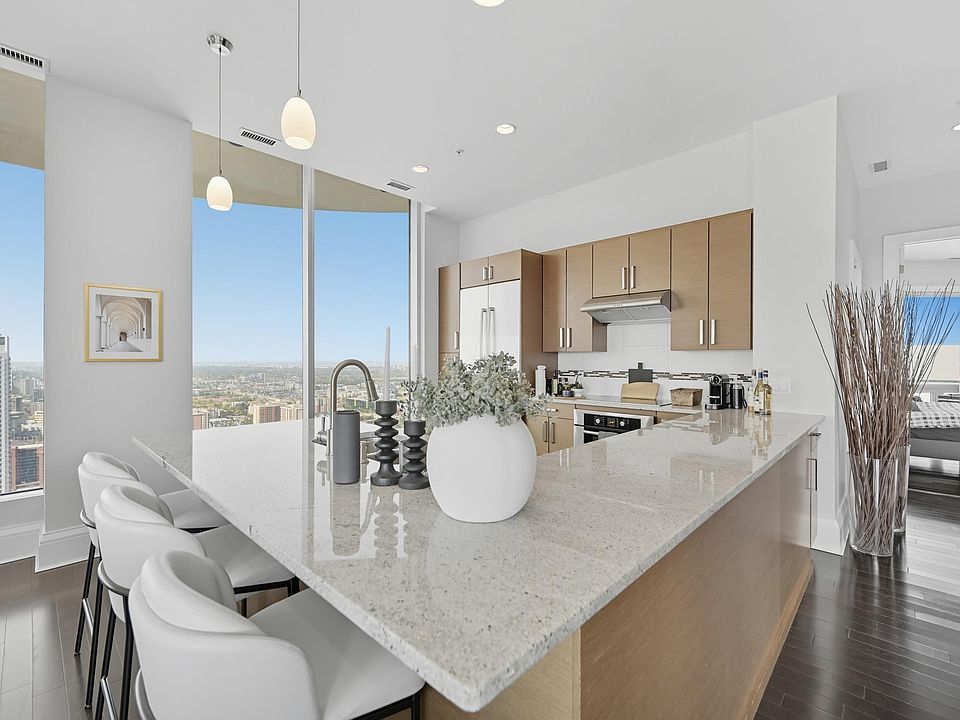 Soaring ceilingsWall-to-wall windowsStunning kitchenGranite countersHardwood floorsOpen flowTwo private primary suites
