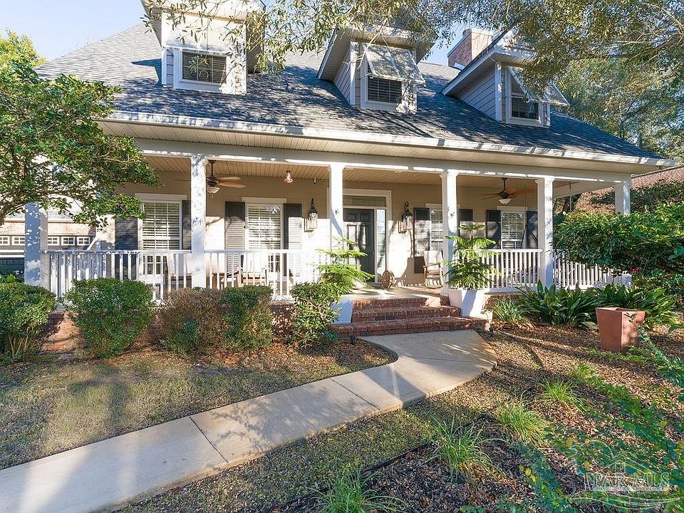 This custom-built home, located in an exclusive, gated, and well-maintained neighborhood, offers a spacious and thoughtfully designed layout with 4 bedrooms and 2.5 baths, ideal for comfortable everyday living and entertaining. The primary suite includes a spacious en-suite bath with a relaxing Jacuzzi tub. The front porch offers a beautiful outdoor space that extends the width of the home, perfect for rocking chairs or a porch swing. Inside, you’ll find large living spaces, a formal dining room, a gas fireplace, and wood floors and tile throughout, creating a warm and timeless feel. The 2025 updated kitchen serves as the heart of the home, featuring a large center island, ample workspace, and a layout well suited for gathering and daily use. Each bedroom offers generous storage. Additional unfinished attic space above the detached garage provides exciting potential for future expansion or extra storage. Other recent 2025 updates include a freshly repainted exterior and a newly rescreened enclosed back porch, extending the living space and offering a comfortable spot to relax. The home sits on a generous lot with a large fenced backyard, while a pollinator garden beside the driveway adds seasonal color and charm - it will be ready to be pruned in early spring and will bring blooming flowers such as Heathers, Milkweed, and Lantana, attracting beautiful butterflies and hummingbirds. Residents enjoy access to neighborhood amenities including a large community pool, tennis courts, pickleball, basketball, and scenic walking trails throughout the neighborhood and leading to a beautiful intercoastal waterway and white sand shoreline at Trout Point Nature Preserve. Conveniently located just 5 minutes from NAS Pensacola, with nearby schools, grocery stores, Walmart, Target, Starbucks and more, this home also provides easy access to downtown, the beach, and area shopping.