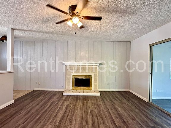 Welcome to the Mira Mesa, a charming single-level home located at 10152 Embassy Wy in sunny San Diego, CA. This corner lot property, built in 1975, boasts four spacious bedrooms and two full bathrooms. The home features dual pane windows that allow for ample natural light, enhancing the beauty of the faux wood LVP floors. The spacious eat-in kitchen is equipped with an electric stove/oven and stainless steel appliances, perfect for those who love to cook. The house also includes a dishwasher for your convenience. The living area is made cozy with a fireplace, and ceiling fans with light fixtures are installed throughout the home for added comfort. The property also includes an attached 2-car garage with an opener, providing secure parking and additional storage space. The front patio and rear yard are both fenced, offering privacy and a safe space for pets under 30lbs. The enclosed back patio is perfect for outdoor dining or relaxation. With ceramic tile and faux wood luxury vinyl plank flooring, this home combines style and durability. Experience the comfort and convenience of living in the Mira Mesa, a home that truly caters to your needs.