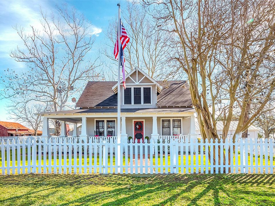 Just an hour from Houston, this updated farmhouse offers 3 beds, 2.5 baths, and a flex room across 2,330 sqft. Enjoy mornings on the wide wraparound porch beneath mature shade trees. Inside, hardwood and tile floors lead to bright, open spaces, a wood-burning stove, central gas heat, and electric cooling.