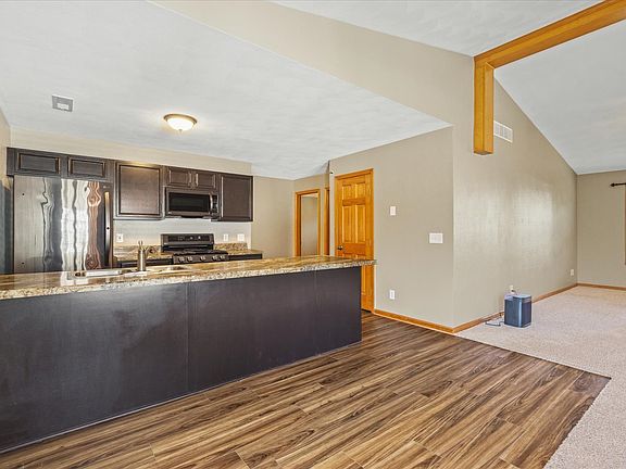 FANTASTIC ROSCOE Location and HONONEGAH Schools! This beautifully updated upper-level unit is move-in ready with thoughtful renovations throughout. The remodeled kitchen features a large pantry, bar seating, and sleek gunmetal appliances (new in 2021). Vaulted ceilings in the dining and living areas fill the home with natural light, creating a bright and open feel. The spacious primary bedroom includes a walk-in closet and private en-suite bath with a step-in shower. The guest bath has been stylishly updated as well. A deck off of the living space tons of light and is perfect for sitting with a morning coffee. Laundry is conveniently located on the main level. Additional upgrades include: new central air, furnace, and water heater (2021); new flooring in the kitchen and guest bath (2021); updated light fixtures and ceiling fans (2020); and washer/dryer (2017). A Ring camera is also included. Enjoy a low-maintenance lifestyle with lawn care and snow removal handled for you. Small pets allowed and rentals permitted-great for both homeowners and investors!