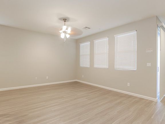 A xeriscaped lawn and Southwest architecture define this three-bedroom, two-bathroom, renovated rental home in Las Vegas. Vinyl floors and a ceiling fan create a cool respite in the living room. In the kitchen, granite countertops and brand-new stainless steel appliances make it easy to cook for the family or the whole neighborhood. Host guests in the dining room, which features a pretty pendant light and a view of the fenced-in backyard. You could also enjoy a barbecue on the shaded brick patio in the backyard. Upstairs, the master suite includes a walk-in closet and gleaming vinyl plank floors. The en suite features a garden tub and vanity with dual sinks. Reserve a time to visit this renovated rental home in 89166 today.