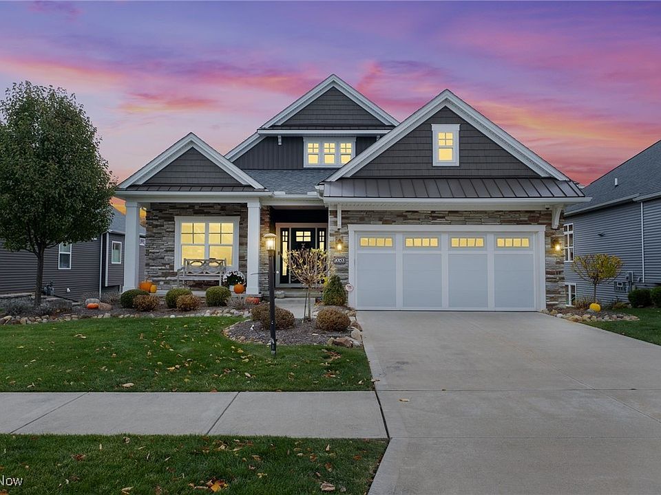 Welcome to this stunning 3BR/3FB Lancaster home in The Village of Brecksville that offers extensive upgrades and one-level style living with a finished walk-out basement. Built by Petros Homes, this home features a low-maintenance lifestyle combined with a wonderful location in this cluster home community. Please see the Matterport 3D Virtual Tour walkthrough, cinematic video, and 2D/3D floorplans for details! The inviting front porch welcomes you into the spacious foyer with views of the bright, open concept great room anchored by a gas log fireplace with stone surround. The dining area provides access to the composite deck for entertaining and relaxation. The kitchen features extra tall cabinetry with crown molding, SS appliances, café-style bar seating for 3, gas cooktop, wall oven, farmer’s sink, pendant lighting, quartz countertops, tiled backsplash, overhead task lighting and custom hardware. The primary bedroom features an exquisitely designed ensuite with 2 separate vanities, an oversized tiled shower w/seating and a walk-in closet with organizers galore. The laundry room has built-in seating, storage, and beadboard w/coat hooks. The extensive custom finish in the lower-level will accommodate a wide variety of needs with open areas, a high-end full bath, a 3rd bedroom, heavy-duty storage shelving and a walk-out to the backyard. Seller upgrades include high-end light fixtures, ceiling fans, window treatments, Restoration Hardware brass pulls, Speed Queen washer, custom closet organizers (primary BR, 2nd BR, coat closet), and main level Rejuvenation bath mirrors. RedLine Garage Gear upgrade: flooring, cabinets, peg board, near-ceiling tire racks. Landscaping includes all 4 sides, backyard trees and lawn irrigation system. Brecksville offers an exceptional recreation center, top rated schools, hiking, biking, golfing and skiing within minutes. Near Valor Acres, the Cuyahoga National Valley Park & quick highway access.