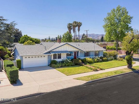Outstanding 4 bedroom 2 bathroom premier corner lot, with spa, R/V access, and one of the largest lots in the neighborhood! This home features an open floorplan with plenty of room to spread out. As you walk through the front door you will find all 4 bedrooms on the right side of the home. The master bedroom has an ensuite updated bathroom with walk-in shower & additional storage further down the hallway you will find an updated guest bathroom with large soaking tub and newer vanity. Kitchen includes custom built-ins, butlers pantry plus Island and plenty of light. The kitchen opens up to dining area and flows into the generously sized family room with large brick fireplace. Adjacent to the family room is the spacious, light and bright patio enclosure, a great space to use as a living room or game room with access to covered patio's, spa, fire pit, and large yard with grass plenty of mature vegetation . Yard has plenty of room for an ADU or basketball hoop! Additional features include newer Roof, water heater and Ice Cold-AC, one Car finished garage. Close to restaurants, shopping the 405 and 118 freeways and the University of Northridge
