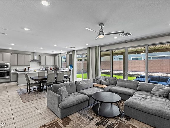 Absolutely Stunning Home Built in 2023 with All of The Upgrades! Priced To Sell! This Energy Efficient and Popular Egan Floorplan with over 3K Sq. Ft. Includes 5 Bedrooms, a Loft, and Downstairs Secondary Primary Bedroom with a Full Bath, Perfect for a Mother-In-Law Suite. Upgraded Luxury Tile and Plank Flooring Throughout. Beautiful Kitchen Includes Quartz Counters, Custom Cabinets, Built In Stove with Canopy Hood, Stainless Steel Appliances and Pantry. Relax on The Balcony Off of The Loft Area. Oversized Primary Bedroom with Walk-In Closet and an En-Suite Bath that Includes a Walk-In Shower with Tiled Inlay, and Rainfall Shower! Garage Features Epoxy Flooring, Ev-Charger and Tankless Water Heater. Step Into The Immaculate Finished Backyard and Unwind, with a Paver Covered Patio, and Artificial Grass. This Home Perfectly Blends Modern Style, Upgrades, and Functionality! Fantastic Location in an Excellent School District. Also near Allegiant Stadium, Restaurants, Shopping and Amenities