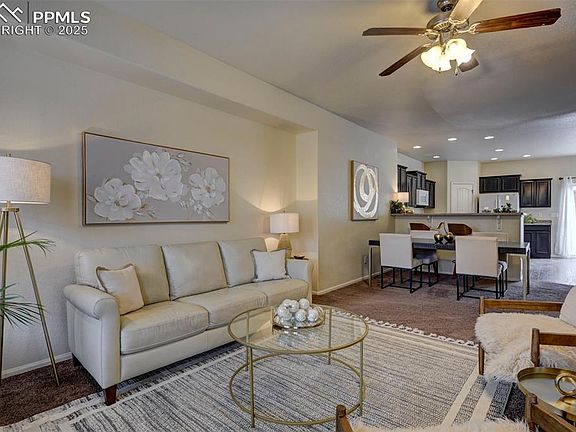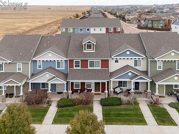 This inviting 3-bedroom, 2.5-bath townhome in Lorson Ranch blends smart design with everyday comfort. A thoughtful layout, open main level, and detached two-car garage create a spacious feel while keeping maintenance low — all just minutes from Fort Carson, Peterson, and Schriever Space Force Bases. The open-concept main floor connects the living and dining areas for convenient entertaining and daily living. The kitchen features generous cabinetry, bar seating, and an eat-in nook perfect for morning coffee or casual meals. Step outside to a fenced patio that’s ideal for grilling, relaxing, or enjoying a quiet evening outdoors. Upstairs, all three bedrooms and the laundry room are conveniently located. The primary suite includes a walk-in closet and private bath, while two additional bedrooms share a well-appointed hall bath — perfect for family, guests, or a home office. Situated in the heart of Lorson Ranch, this home offers nearby parks, walking trails, and easy access to shopping, dining, and everyday amenities — a comfortable, move-in-ready retreat in a growing Colorado Springs community.