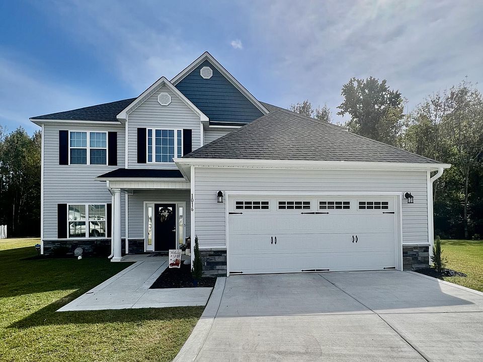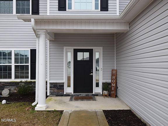 ASSUMABLE VA LOAN AT 2.25%! Situated on one of the largest nature-backing lots on a quiet cul-de-sac in the desirable Lake View subdivision is this less than one year old 'nearly-new' home! This spacious floor plan features 4 bedrooms, 2.5 baths, plus an additional flex room with closet that can easily be used as a 5th bedroom! The open kitchen features granite counters, stainless appliances, chef's island, and both informal and formal dining rooms. The elegant master suite features tray ceilings and en-suite bath with garden tub and separate shower. All secondary bedrooms upstairs feature walk-in closets! Located in an award-winning school district and only minutes from MCAS Sherry Point and local NC beaches.