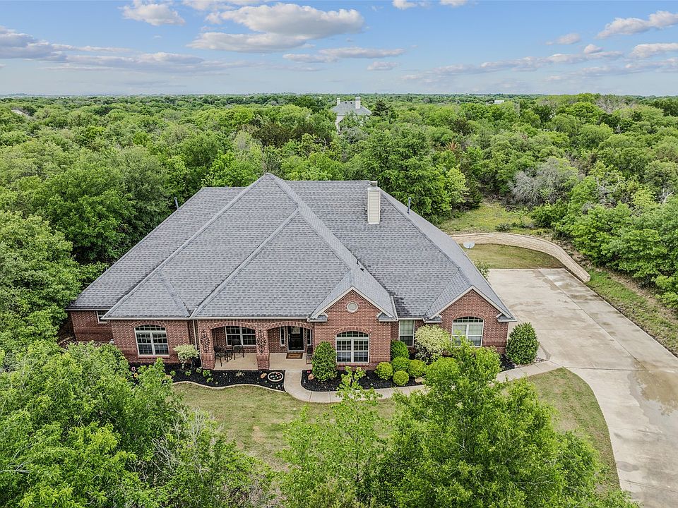 This stunning single-story 3,420 SF home has a welcoming front porch and beautiful landscaping on a private, heavily treed 2.807 AC lot in the gated Boling Ranch Estate neighborhood, where you can enjoy swimming in the community pool. Inside, an open-flowing floor plan is built for entertaining, with a formal dining room, a spacious living room, and a media room with a wet bar just off the main great room. The gourmet kitchen boasts a breakfast bar, gas stove, ample storage, and a breakfast room. The peaceful primary suite hosts an ensuite with dual vanities, a walk-in shower, a garden tub, and an expansive closet. A flexible floor plan with an office, game room, or up to four secondary bedrooms, three full baths, and a utility room complete the interior. 1 acre of property behind house, secluded property! 10x10 storage shed. See the property improvements list in the Transaction Desk.