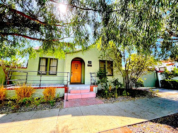 This is an absolutely adorable English Tudor Revival home with additional guest studio over garage. Ideally located in the highly sought after historic neighborhood of California Heights. Main residence is 2 bedrooms & 1 full bath in 934 square feet. Guest studio with full bath over garage is 336 square feet. The charming residence has original oak hardwood floors, living room with gas fireplace and custom mantel with built-in bookcase, remodeled eat-in kitchen with granite counters, pantry area and stainless steel appliances. Period style full bath with pedestal sink and white tile with black accent floors and walls. The guest studio over the garage has original douglas fir floors, vaulted ceiling, guest sink and counter and full bath with vanity area. The rear yard is very private with high fencing, custom poured paver entertaining patio and sail cloth shading. Long gated driveway leading to over sized one car garage that has a separate laundry room and storage area. This is such a warm and wonderful home that can be very versatile for many different uses. This home will likely sell very fast.