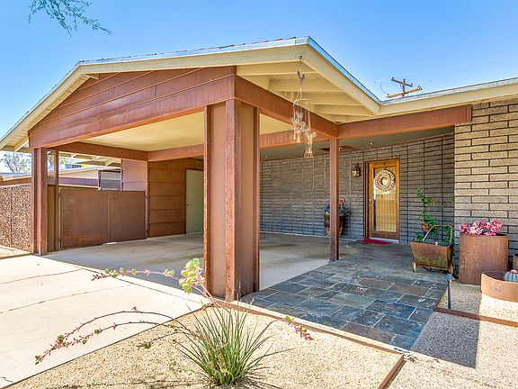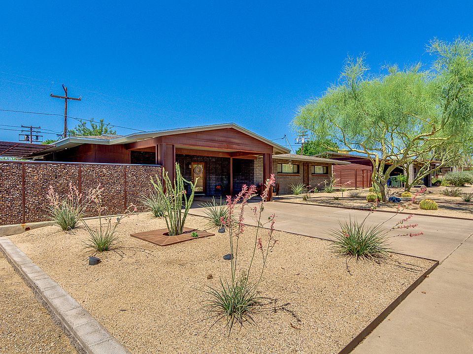 Mid Century home meets transitional metal elements giving it rustic flare. Turn key ready! Kitchen with upgraded granite, all new Kitchen Aid appliances, range is gas! Tankless water heater, custom cabinets with self closing drawers and drawers within drawers. Bathrooms are unique in their own way bringing the elements from outside to the indoors with a spa like feel. Guest bathroom has a claw tub. Both bathrooms have floor to ceiling tiles. Backyard is designed for those who like to entertain with a fire pit, fireplace, and 2 fire bowls by the pool. Covered gazebo with built in BBQ, working sink, lighted fan, lights, concrete countertops with plenty of room for seating and storage under. Additional items: inside of home freshly painted, brand new tile from corner to corner custom built-in wood & concrete bench. AC inspected fall 2018. Front yard has drip system.Backyard has gas fire place and 3 additional fire pits, built in gas grill with, concrete counter tops and functional sink, lighting, custom built in wood and concrete bench huge garden bed with new drip and new dirt ready for planting built in 1958 block mid century with metal twists huge gas fire place home runs on gas stove,Landscaped lighting on timer in front and back yard