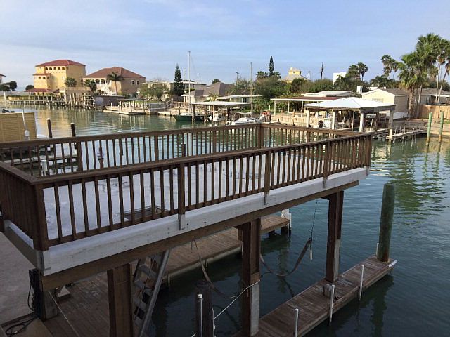 Wonderful waterfront living! Huge deck covering a boatslip with lift. 2 bedroom, 2 bath and 1 car garage with Captain's Quarters. Open concept with lots of windows. Large balcony. Great location! Quick access to the Bay and Gulf of Mexico. Close to public boat ramp. Well maintained complex. Repainted in 2013. Low HOA dues include: water, sewer, trash, cable, WIFI, pest control, building insurance and grounds cleaning.