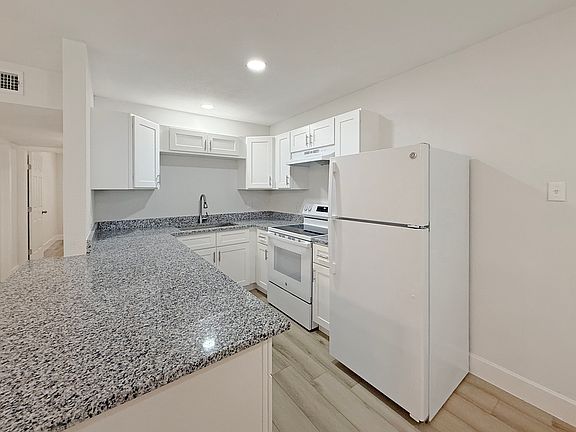 This charming first-floor, 2-bedroom, 1-bath end unit offers comfort, convenience, and style. The inviting living area features laminate wood floors, with tile in the bathroom for easy maintenance. The updated kitchen boasts white cabinets, granite countertops, and includes a refrigerator. Enjoy the added convenience of an assigned parking space. Nestled in a desirable League City location, you'll be close to historic homes, city parks, great restaurants, and shopping. Experience the perfect blend of safety, comfort, and suburban charm in this immaculate property. Don't miss your chance schedule a visit today and see why this one won't last! You won't regret it. Make the move and come experience this delightful property! It's your chance to make it yours. Don't miss out and schedule a visit today. You won't be disappointed!