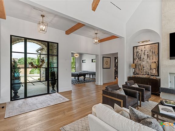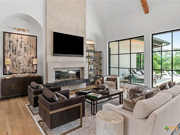 Luxury and cutting-edge design combine in this exquisite 4,400+ square-foot estate, masterfully built by Quarles Construction and set on 1.41 serene acres fronting Salado Creek. This 4-bedroom, 3.5-bath home blends high-end finishes with forward-thinking technology. Inside, you’ll find an open-concept living space anchored by custom steel windows that flood the home with natural light. The living room & primary suite both feature sleek DaVinci fireplaces, while a whole-house Aroma 360 scenting system & invisible in-room sound system offer a sensory-rich environment. A fully integrated smart home system allows seamless control of the temperature, lighting, audio, blinds, TVs, pool, & more all from your tablet or phone. The heart of the home is a chef’s dream kitchen with Wolf Sub-Zero appliances, luxurious quartzite countertops, soft-close cabinetry, and a butler’s pantry with an upright freezer, sink, vacuum seal drawer, and ample storage. Entertain with ease thanks to a dedicated wet bar featuring wine refrigeration and a 100% custom VintageView wine storage system. Retreat to the spa-like primary suite, where a full quartzite shower and automated Hunter Douglas shades create a perfect sanctuary. Additional spaces include a private office, game room, and bonus room. Outside, enjoy a fully outfitted outdoor kitchen, professional landscaping, a custom steel fence, integrated surround sound, and a path leading directly to Salado Creek. Sustainability and efficiency are top-of-mind with 60 owned solar panels, a whole-house Kohler generator with automatic switching, a 1,000-gallon underground propane tank, and two stainless steel rainwater capture tanks. The air-conditioned shop adds even more versatility. Furnishings are negotiable and are curated largely from Tommy Bahama, Arhaus, and Restoration Hardware, offering the perfect blend of relaxed luxury and timeless style. For a complete list of features, or to schedule a private tour, please contact listing agent.