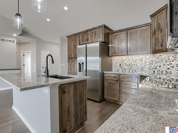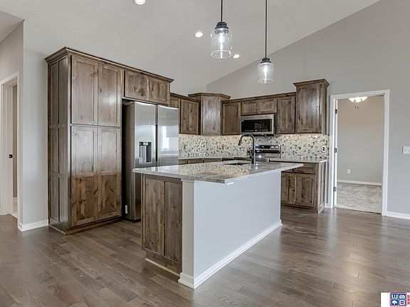 Price is definately right on this Hickman, Nebraska ranch. 4 bed, 3 bath, 3 stall garage. Granite countertops, engineered wood flooring, tile backsplash, custom cabinetry, large island. Cathedral ceilings with fireplace. Basement finish includes 4th bedroom, another bathroom, and large family room. Covered patio and porch. Sprinklers and sod included. Garage is insulated and drywalled.
