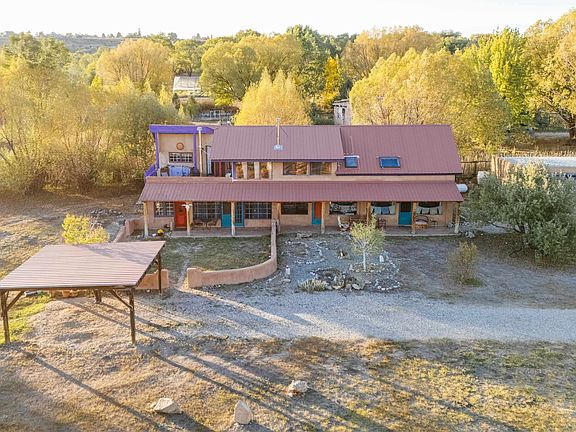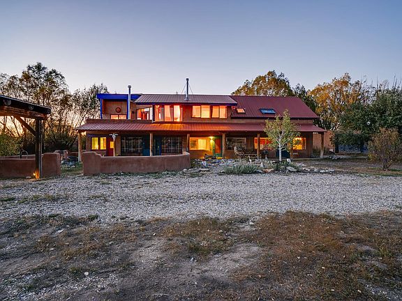 Drenched in vibrant color and situated on two acres of irrigated land in an enormously desirable location, this property, with wonderful views of both Taos Mountain and the Sangre de Cristos, invites you to bring along your imagination because 1016 La Cienega has a lot to offer its next owner. Four bedrooms/3 baths, a 4 car garage/studio space, rental property, storage, mini split, carport and more! La Cienega is one of those roads that is close to town and yet feels like it's a world away. This is a neighborhood in the true sense of the word. People watch out for one another here and yet it is quiet, private and rural with Pueblo Land on two sides. The main house is a celebration of festive color that echos the artistic spirit of Taos. An open living room and kitchen feature vividly colored tile and very high ceilings- feeling warm and alive. In the main house there are two bedrooms and one full bath and there is also a double door that connects to an additional bedroom and bathroom on the ground level. This design offers perfect flow for entertaining- leading out to a fabulous deck to watch sunset. Then, there is the adorable one bedroom/one bath income generating casita/apt. With convenient exterior doors, there are many opportunities for flex use for these spaces. Another door leads to a laundry room that could also be an office/studio/gym/yoga. In addition to all these interesting living spaces, there is a 4 car garage with electricity, additional storage area and a shed. Bring your vision, artistry and originality to this wonderful property. Call today for your private showing.