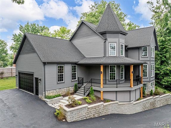 This new construction offers a smart layout with upscale finishes and flexible living spaces across all three levels. An expansive covered front porch opens to a bright entry with natural wood-style floors, tray ceiling office, and custom open staircase with black spindles and stained newel posts. The vaulted great room features a stone gas fireplace, wall of windows, and designer lighting. The kitchen features ceiling-height custom cabinetry, quartz countertops, marble island, gourmet gas range with hood, tile backsplash, and both recessed and pendant lighting.