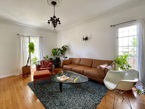 1930's MUSEUM DISTRICT/MIRACLE MILE FRENCH CHATEAU TROPHY HOME ~FRONT UNIT Excellent Art District location, steps to LACMA, outdoor eateries, take-outs, bakeries, shops, parks and more. Overlooks French Garden/Fountain. French windows, wood floors, high ceilings with crown moldings, antique chandeliers and wall sconces, period hardware throughout. Deco tile kitchen w/restored antique stove, refrigerator, microwave; WASHER/DRYER IN UNIT. Formal dining room with built-in hutches. Beautiful large bedroom with wardrobe closet, large window, hand-painted, sculpted walls, curtains, brass rods. Huge deco tile bathroom with separate tub and shower and double-sided vanity. Air Conditioning, Private enclosed garage with storage, Pets Welcome, Unfurnished; we are relocation specialists.