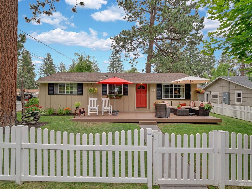 Here's an adorable home in a fabulous west side location. This little cutie has an updated kitchen and bathroom, new ductless heating and cooling system, 2 spacious bedrooms and tons of storage space! The front yard is awesome with a large composite deck and, wait for it, a white picket fence! 2 parking spots in front of the house along with a 2-car garage. Large backyard that is completely fenced in. Close to shopping and restaurants; you will really love this home and location.