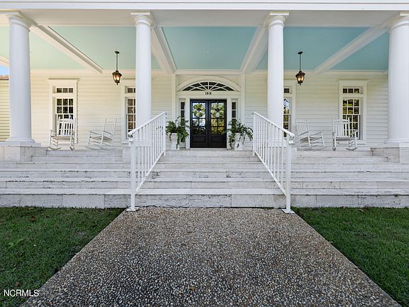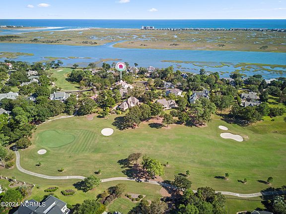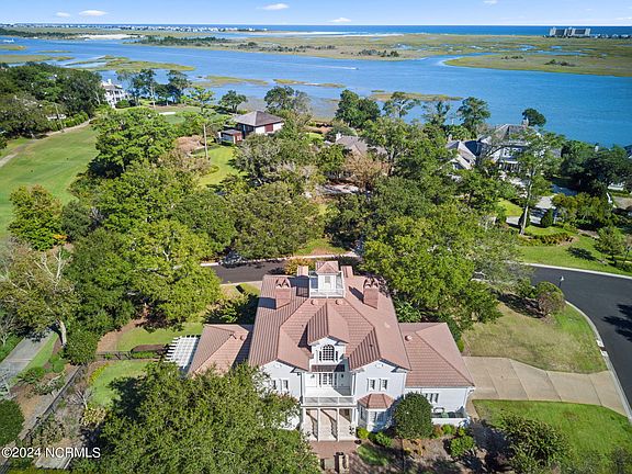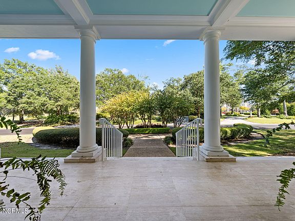 Located on a corner lot on prestigious Ocean Ridge Drive, across from the Intracoastal Waterway, is this stately 4 BR, 4.5 bath southern-style estate home exuding luxury and elegance. Instant curb appeal is present as you approach the circular driveway bordered by mature Crepe Myrtles and ascend the steps to the extensive covered front porch with marble floors. The double door entry opens to a grand foyer with a beautiful marble inlay mosaic and an arched opening to an exquisite formal living room. It features beautiful wood floors with mahogany inlay, a coffered ceiling with an elegant chandelier, a gas-log fireplace with a marble hearth flanked by built-in cabinets and bookcases. Across from the formal living room is the elegant light-filled formal dining room, perfect for entertaining in style, with mahogany-inlay wood floors, a gas-log fireplace with a marble hearth, a fine fluted and mirrored mantel and a built-in cabinet with lighted display shelving. The oversized kitchen is an epicurean's delight with a gourmet kitchen featuring an oversized granite center island, beautiful quality cabinetry, a Viking 5-burner gas range/oven, Viking wall ovens, a Sub-Zero refrigerator, Bosch dishwasher, butler's pantry and a walk-in pantry room. Completing the kitchen area is the breakfast room with a bay-window overlooking the rear grounds, a desk area and a French door to the covered rear patio and gardens. Across the elegant main hall on the 1st floor is a private anteroom that leads to the spacious primary bedroom with stunning wood floors, a tray ceiling and French doors to a side porch shaded by an attractive pergola. The spa-like primary bathroom features dual vanities, a make-up vanity, tiled floors, built-in display cabinets, a luxurious tiled steam shower with dual shower heads and wall jets, a whirlpool tub and WC. The sizable primary closet has custom shelving and its own washer/dryer unit for added convenience. Also, on the first floor is a study that is is ideal as a den or home office. Its large windows flood the room with light and a French door leads to the covered rear patio and gardens. Completing the 1st floor is an elegant powder room and a laundry room. A striking central staircase from the main hall ascends to the second floor that opens to a central hall and leads to the extensive second floor covered front porch, ideal for relaxing and enjoying the mild ocean breeze, golf course vistas and sunrises. A jewel of the 2nd floor is the large family room featuring a gas-log fireplace with marble hearth, wood floors and built-in bookcases. Three spacious guest bedrooms, all with wood floors and walk-in closets, are located on the 2nd floor along with two full bathrooms. The grand staircase ascends to a 3rd floor that opens to an enormous bonus room with an ensuite full bathroom. It's ideal as a media room or recreation room and includes a billiard table and accessories that convey with the home. A stationary ladder provides access to the cupola with exterior access to enjoy stunning 360-degree vistas. Luxurious details abound inside this 6121 sq. ft. home and include wood floors throughout the 1st and 2nd floor living areas and bedrooms (except the kitchen), 3 masonry fireplaces, 10 ft tall ceilings, fine and abundant moldings, arched entries, a grand central staircase from the 1st to the 3rd floors, a central vacuum system, built-in stereo system, a Rinnai hot water heater, a climate-controlled storage room and more. The home's exterior includes plenty of space to relax with family and friends and include the 2 extensive covered front porches, a side patio with a pergola, a 2nd floor porch overlooking the rear yard and a rear patio and garden featuring two fountains. With more than half an acre there's a possibility for an inground pool, if desired. Other features include ample parking with an oversized 2-car attached garage, side and front circular driveways, an encapsulated crawlspace, professionally maintained mature landscaping, fenced rear and side yards and a tiled roof. This home is ideally situated in the premier gated community of Landfall in close proximity to Wrightsville Beach and 1st class dining and shopping. Membership in the Country Club of Landfall may be purchased separately and offers amenities that include 45 holes of golf on the Pete Dye and Jack Nicklaus-designed golf courses, tennis and pickleball courts, a sports center, an Olympic size pool, and 2 clubhouses. A truly exceptional and well-built home.
