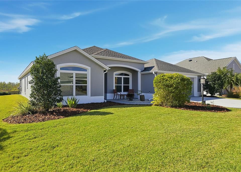 Stunning TURNKEY Aspen Model in the Highly Desired Village of Dunedin — NO BOND! Welcome to this beautifully maintained three-bedroom, two-bath Aspen model perfectly situated in the prime Village of Dunedin. From the moment you arrive, the attractive curb appeal stands out with manicured landscaping, and a EXPANDED two-car garage. Roof 2016 solar panels installed 2021 and paid off in full. Inside, an open and airy floor-plan greets you with abundant natural light, soaring ceilings, and elegant diamond-pattern tile throughout the main living areas. The spacious kitchen is ideal for both everyday cooking and entertaining—featuring Quartz countertops, TALL cabinetry, a movable island, and a stylish built-in wine or coffee bar. A pocket door creates a private guest suite where visitors will appreciate a generously sized bedroom, a hallway closet, and an updated guest bath with granite counters and a walk-in tile shower. The primary suite offers a peaceful retreat with tray ceilings, four large windows, and an additional solar tube. The en-suite bath includes QUARTZ counters, a walk-in tile ROMAN shower, a private water closet with a pocket door, and a large walk-in closet. Additional highlights include an indoor laundry room with upper cabinets and an expanded garage complete with floor-to-ceiling storage cabinets and a utility sink. One of the home’s most impressive features is the oversized lanai, spanning the width of the home. This inviting outdoor living space offers diamond-pattern tile, collapsible patio doors, and tranquil views of a wildlife preserve—perfect for relaxing, entertaining, and even offering ROOM FOR A POOL. Energy-efficient living is already built in with a PAID-IN-FULL solar power system and a new water filtration system. All of this just 3 miles from Brownwood Paddock Square and close to Evans Prairie, Bonifay, and Belle Glade Country Clubs—putting golf, pickleball, pools, recreation centers, and more right at your fingertips. Come see why this Dunedin gem is the perfect place to call home. Enjoy the beautiful video included!