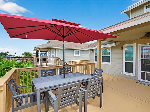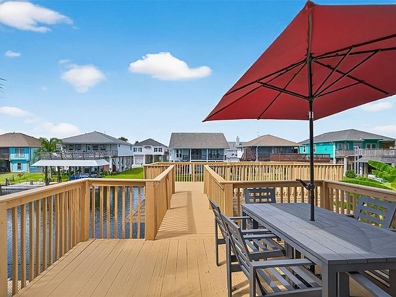 Move in ready! 3-bedrooms, 2-baths on the main floor and spacious flex space downstairs with a full bathroom! Enjoy canal views from your party deck, cruise to Galveston by boat, or relax with fishing and crabbing right from your backyard. The spacious kitchen shines with granite counters, stylish cabinets, a decorative backsplash. Downstairs offers a flexible space—ideal as a guest room, second living area, game room, or personal retreat—plus a full bath. Step outside to your private boathouse with lush landscaping and freshly painted deck—perfect for morning coffee or spectacular sunset dinners. Cruise the canals, boat to Galveston, or spend your days fishing, crabbing, and watching pelicans dive. Bayou Vista is golf cart-friendly and just minutes from the coast—your perfect getaway awaits! Coastal life starts here! Assumable low interest loan for qualifying buyers!