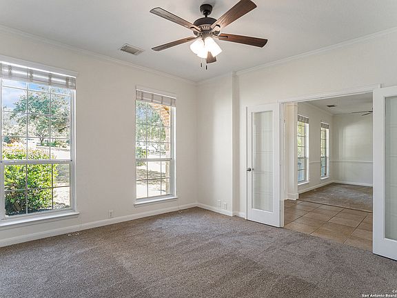 Welcome to this stunning 4-bedroom, 3.5-bathroom gem located in the coveted Iron Mountain Ranch community. Step into the grand two-story foyer, where you'll find the dedicated office to your right and the formal dining room to your left. The main living area is truly impressive with its cathedral ceilings, wood-burning fireplace, and abundant natural light from large windows, creating a grand and inviting atmosphere. The space flows seamlessly into the kitchen, which offers tons of cabinet and counter space, with granite countertops and black appliances. The primary bedroom is a peaceful retreat, featuring large windows and an ensuite with a garden tub and a standing shower. The remaining bedrooms are located upstairs, along with a versatile flex space that is perfect for a media room or play area. Enjoy the outdoors on the large back deck, situated in a fully fenced backyard. Located in a community known for its award-winning schools, this home also offers easy access to 1604 and 281, making commuting and exploring the area a breeze. Schedule your showing today!