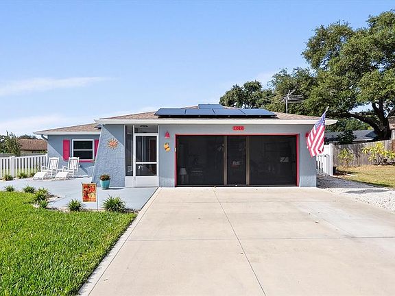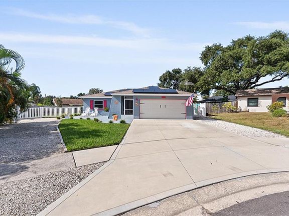 Just when you thought the home you’ve been waiting for would never appear… great news — it’s here, and it will prove to have been worth the wait. Perfectly situated on a quiet cul-de-sac in wonderful Dunedin, FL, this beautifully renovated POOL home truly has it all — and then some. Nearly everything has been updated or replaced with no expense spared and every improvement done thoughtfully, thoroughly, and with exceptional quality. The expanded driveway welcomes you home, and the charming front porch offers the perfect spot for your morning coffee. The screened entry lets you enjoy fresh Florida breezes year-round. Step inside and prepare to fall in love — this home will have you at hello. The open floor plan is anchored by a STUNNING, completely remodeled kitchen featuring all-new everything: custom cabinets, a huge center island, gorgeous quartz counters, upgraded lighting, premium fixtures, and so much more. It truly looks like a designer showroom. Don’t miss the beautifully finished interior laundry closet conveniently located just off the kitchen — no garage laundry here! The living and dining areas flow effortlessly and are filled with natural light. The primary suite offers a walk-in closet and French doors that open to a private backyard paradise. The ensuite bathroom features a spacious walk-in shower with beautiful shower doors, a double-sink vanity, and a private water closet. The front bedroom is bright and inviting, and the second full bathroom has also been completely remodeled. Additional living space awaits through another set of French doors — a fully air-conditioned sunroom with tinted windows for extra comfort, all overlooking the tropical backyard and sparkling pool. Step outside to your showstopper saltwater pool and spa, surrounded by new pavers, screened lanai, lush landscaping, and charming artistic touches on the fence. This private, fully fenced yard truly feels like a tropical resort. There’s even plenty of room to store your kayaks, paddleboards, and other Florida “toys.” This home has been lovingly transformed inside and out. Improvements include (2023–2025): • New extended driveway & patio • New electrical panel • New AC system • All new plumbing • Vinyl plank flooring throughout • Attic fan with new insulation • Complete backyard redesign with new saltwater pool, spa, lanai, and pavers • Screened front entry • New landscaping, irrigation, and tropical trees • Custom kitchen & baths …and so much more. Be sure to ask for the full list of upgrades! What are you waiting for? This is Dunedin living at its finest — a “better-than-new,” move-in-ready home that checks every box. Start packing… this just might be the easiest (and happiest!) move you ever make.