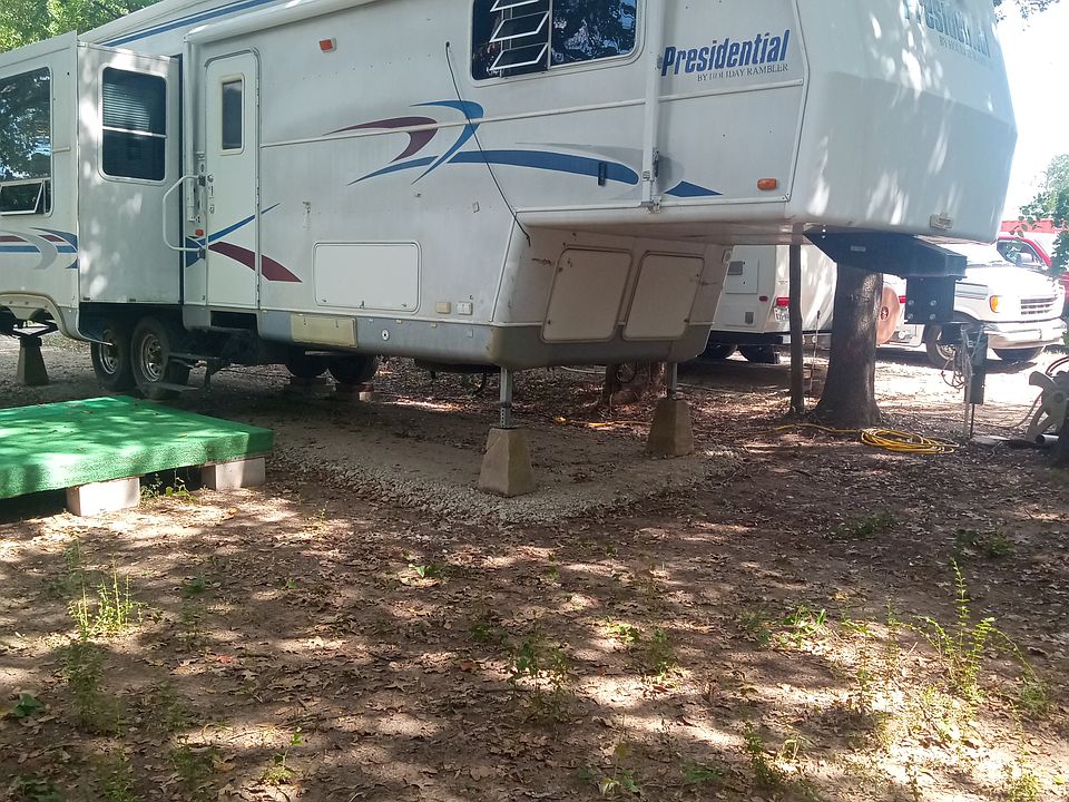34' Holiday Rambler Presidential 5th wheel set up on private land, 3 slide outs, sleeps 2, fully furnished, oodles of storage, rural/ranch setting, off street parking, large shade trees, Golden Water, wifi, pets okay, access to pool and hot tub, owner on site, deposit negotiable. Utilities included. Located just North of Grand Saline.